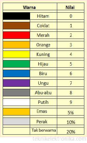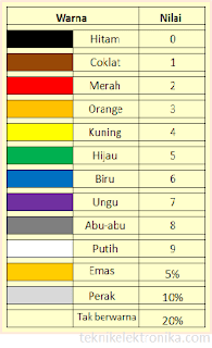 Tabel dibawah ini adalah warna-warna yang terdapat di Tubuh Resistor :