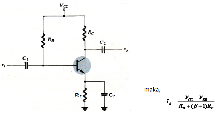 sehingga tahanan RE kalau dilihat dari input untuk mencari arus IB adalah sebesar (β+1)RE.