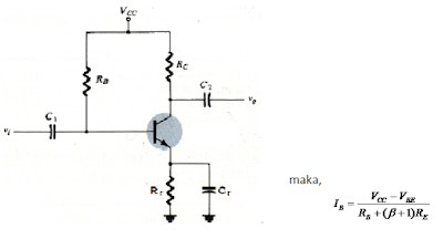Emitter-Stabilized Bias adalah rangkaian Fixed bias yang ditambahkan tahanan RE seperti gambar 12.